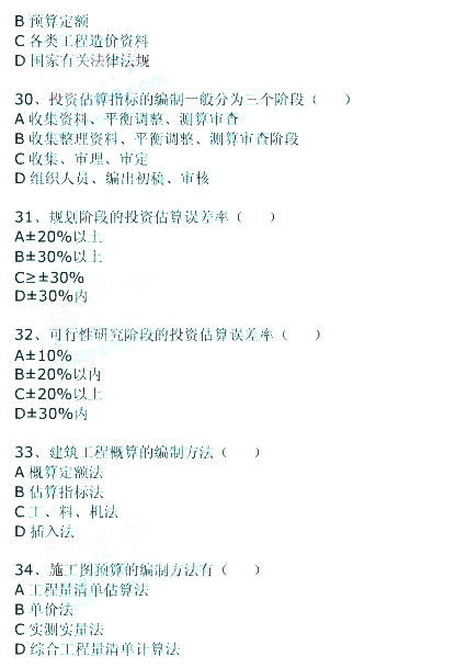 2010年全國造價員基礎知識考前沖刺試卷一(5)