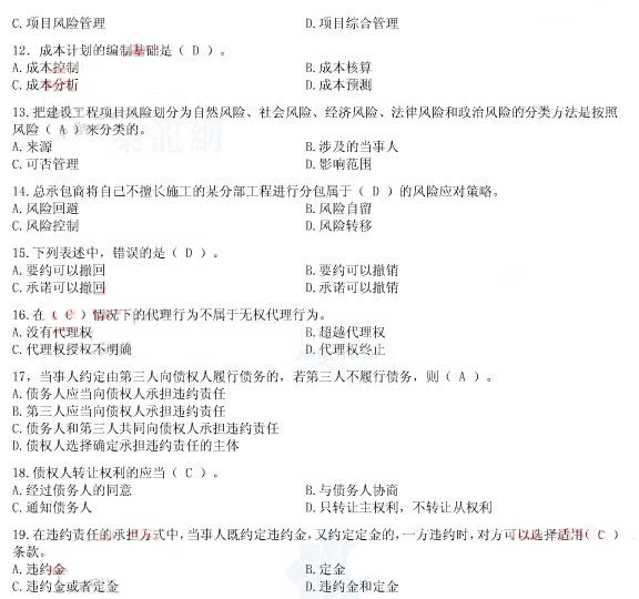 2010年造價員考試考前沖刺模擬試卷四(2)