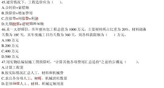 2010年全國(guó)造價(jià)員計(jì)價(jià)基礎(chǔ)考前沖刺試卷一(6)