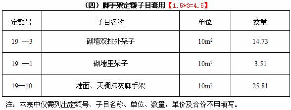定額號填寫正確每項1分,定額名稱及單價各0.5分,計8分(定額名稱準確即可)