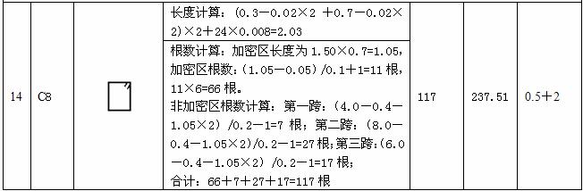 附加吊筋單根長度為2分,根數0.5分,計2.5分