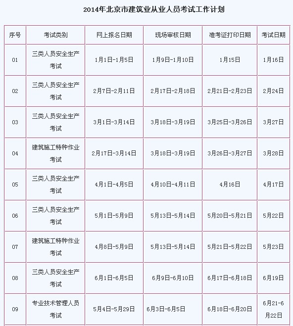 為做好2014年度我市建筑業從業人員培訓考試管理工作,提高從業人員的整體素質,確保工程質量和安全生產。現將2014年北京市建筑業從業人員考試工作計劃予以公布,請各有關單位參照執行。