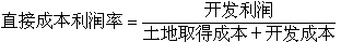 1)計算基數 = 土地取得成本 + 開發成本,相應的利潤率稱為直接成本利潤率 ,即: