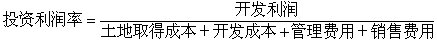 2)計算基數 = 土地取得成本 + 開發成本 + 管理費用十銷售費用,相應的利潤率稱為投資利潤率,即: