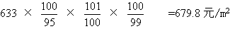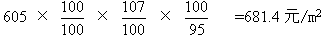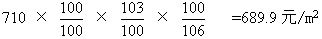 =57.32×10000÷666.67+150+120=1129.80元/m2
