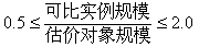 ?、墼谝?guī)模上應(yīng)與估價(jià)對(duì)象的規(guī)模相當(dāng)。例如估價(jià)對(duì)象為一宗土地,則選取的可比實(shí)例的土地面積應(yīng)與該宗土地的面積差不多大小,既不能過大也不能過小。 選取的可比實(shí)例規(guī)模一般應(yīng)在估價(jià)對(duì)象規(guī)模的0.5-2 范圍內(nèi),即: