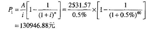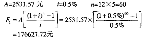 (2)張某5年共還款額:A=2531.57元 i=0.5% n=12×5=60