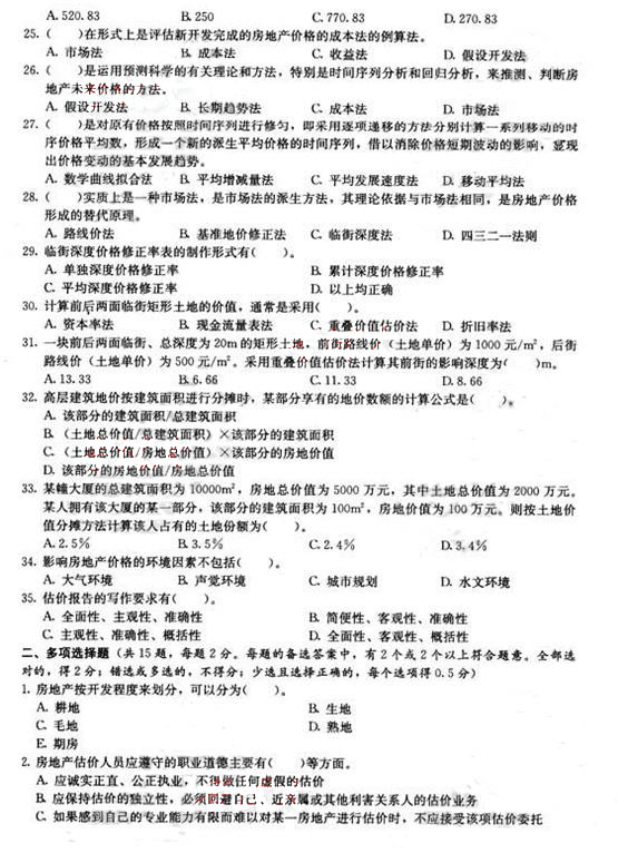 - 2025年房地產估價師考試題模擬練習2025-03-10
