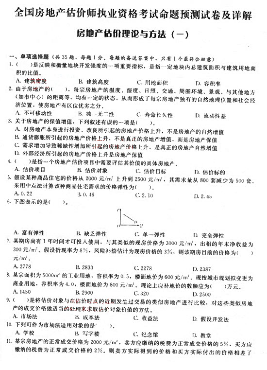全國房地產(chǎn)估價(jià)師考試?yán)碚撆c方法試卷一