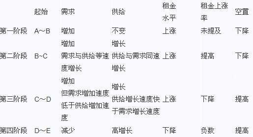 該階段不存在供給過剩,租金停止上漲,開工項目少,但竣工項目多