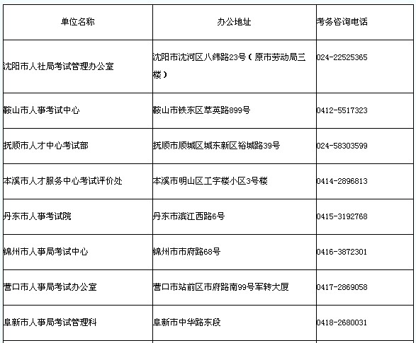 全省人事考試部門辦公地址和考務咨詢電話