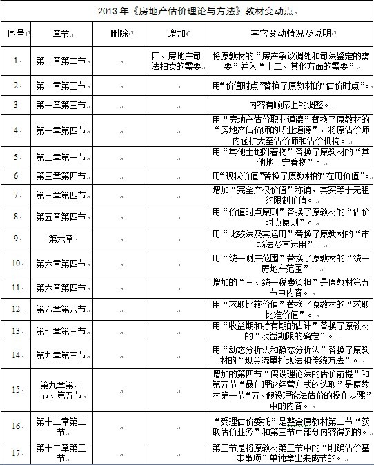 2013年《房地產估價理論與方法》考試教材變動介紹
