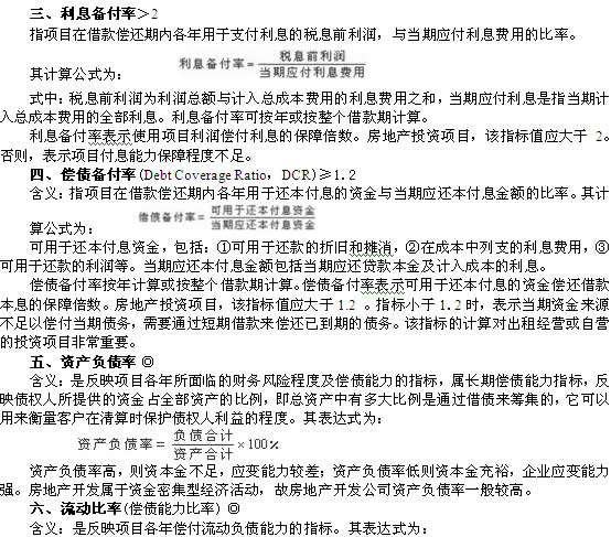 2014年房地產估價師《經營與管理》考點:清償能力指標及其計算