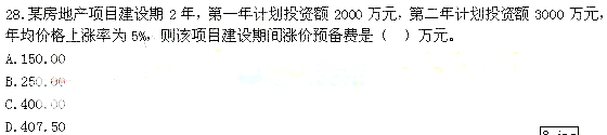 【解析】本題考查的是漲價預備費的計算。2000×【(1+5%)-1】+3000×【(1+5%)-1】=407.5