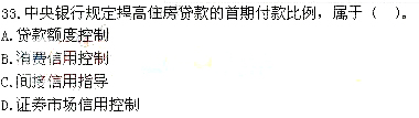 【解析】本題考查的是貨幣政策工具,中央銀行規定提高住房貸款的首期付款比例屬于選擇性貨幣政策工具中的消費信用控制。