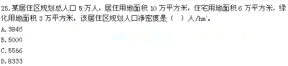 【解析】本題考查的是人口凈密度的計算。人口凈密度=規(guī)劃總人口/住宅用地面積。