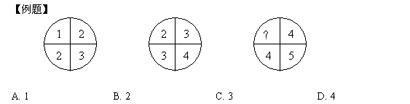 【解析】正確答案是3,根據前兩個圖形,可以看出規律為:1+3=2+2;2+4=3+3;因此,?+5=4+4。所以答案為C。