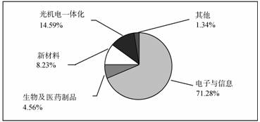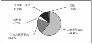 B.2000年高新技術產業的各項產值比重大多有所變化