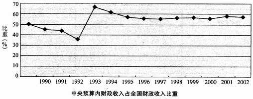 16. 1990至2002年,我國中央預算內財政收入占全國財政收入的比重上升最快的是( )