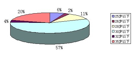 以下是統計的招考年齡要求情況圖。從圖中可以看出,省直機關和各市招考公務員對年齡的要求主要是30歲以下,占57%,此外就是35歲以下占20%。