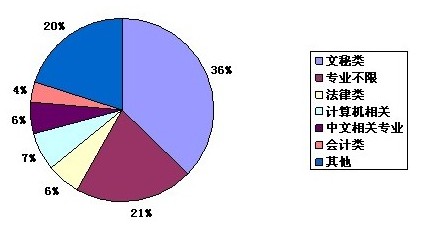 3、36%職位招錄文秘專業,21% 職位不限專業