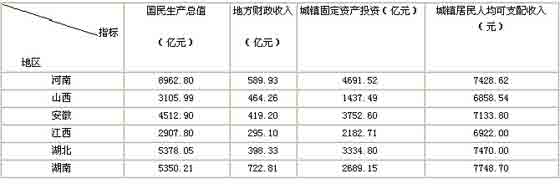 102.2008年上半年,地方財策收入位居中部地區第二和第三的省份分別是: