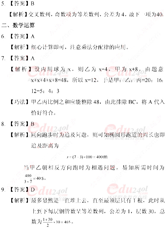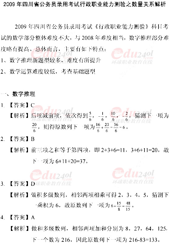2009年四川省公務(wù)員考試行測之數(shù)量關(guān)系解析