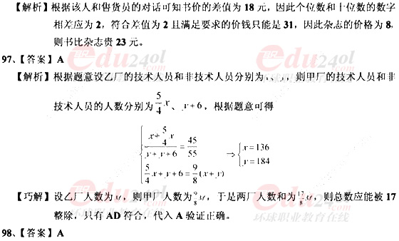 2009年天津湖北陜西行測數(shù)量關(guān)系答案解析