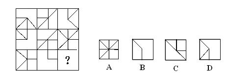 第一種題型:圖形推理。每道題給出一套或兩套圖形,要求報考者認(rèn)真觀察找出圖形排列的規(guī)律,選出符合規(guī)律的一項。