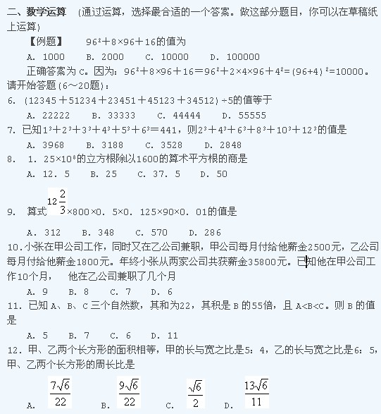 一、數(shù)字推理 (給你一個(gè)數(shù)列,但其中缺少一項(xiàng),仔細(xì)觀察數(shù)列的排列規(guī)律,選擇最合適的一個(gè)答案)
