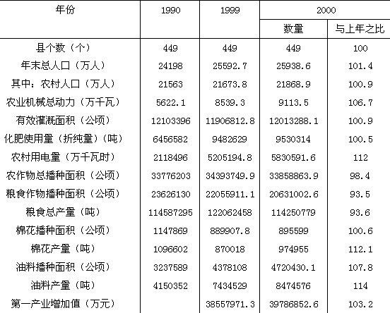 (1)1990年、1999年、2000年數(shù)據(jù)惟一不變的是縣個(gè)數(shù)