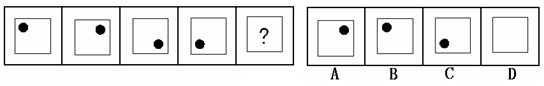 解答:在例題中,黑點在正方形中順時針移動。在第5個圖形中,應該正好移動到左上角。因此,正確答案是B。