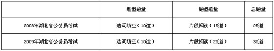 二、2009年湖北省公務員考試言語理解與表達部分題型比例與2008年相比穩中有變