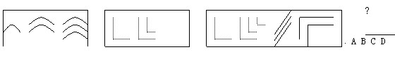 解答:正確答案為B。因為只有B能使兩套圖形具有相似性,僅僅元素不同,一個是實的曲線,一個是虛的直線,但兩組圖形中元素的排列規(guī)律完全相同。