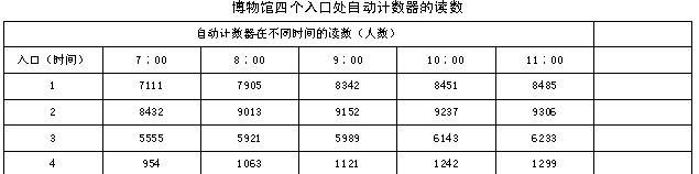 1.從早上7:00到11:00通過入口1進入博物館的參觀人數是( )。