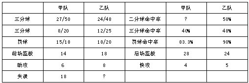 136.表格中甲隊的二分球命中率一欄應填多少?( )。