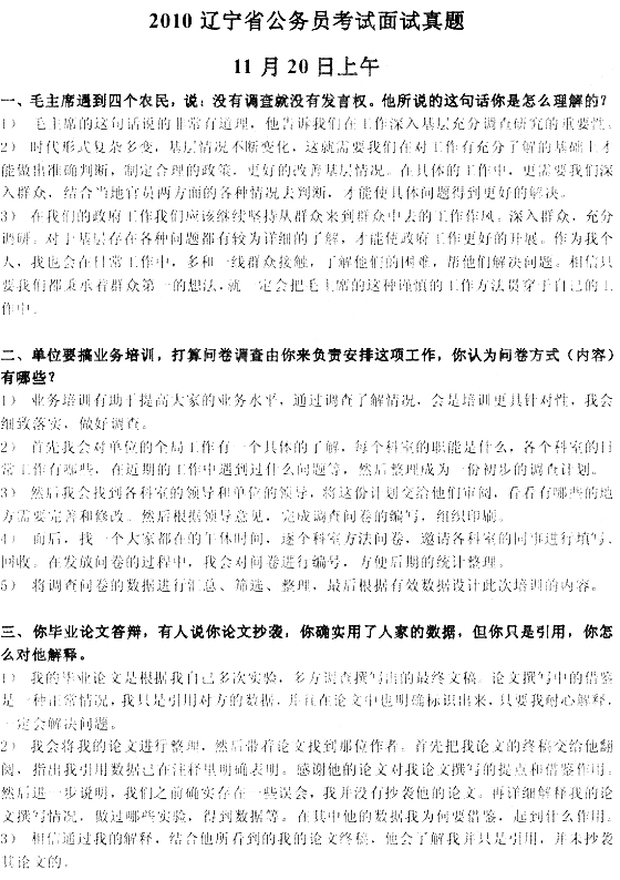 2010年11月20日遼寧公務(wù)員考試面試真題解析