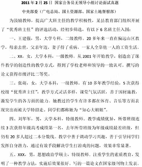 2011國考面試真題:2月25日中央部委面試真題
