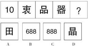 解析:本題目考察漢字的筆畫。前面一組圖形筆畫數分別是:2、4、6;后面一組圖形筆畫數:2、4、?;因此選擇一個圖形具有6筆畫即可