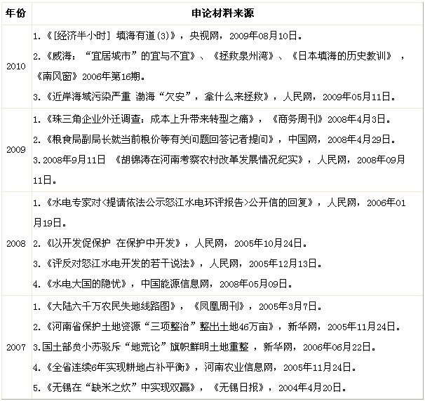 考生若想打破這種申論寫作水平,就需要在考試外下功夫,平時多關注時政新聞,了解國策國情。申論所給定的材料不是命題人的主觀編造,而是來源于既有的社會現實、新聞報道、政府文件和相關社會科學研究成果,我們對近5年來中央、國家機關申論考試的材料來源進行了梳理,材料來源如下:
