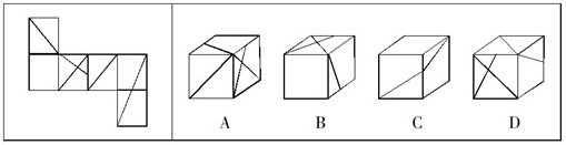 83.左邊給定的是紙盒的外表面,下面哪一項能由它折疊而成?