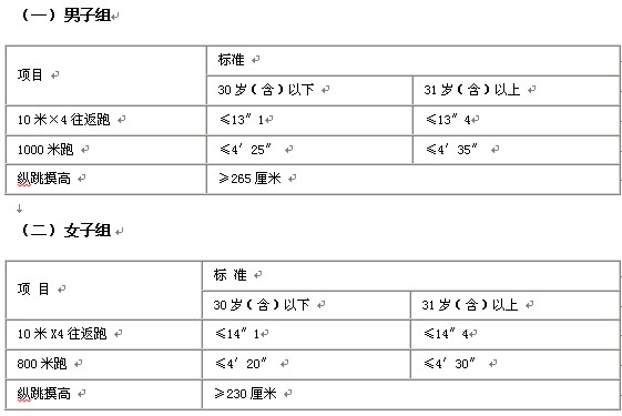陜西省錄用人民警察體能測評項目和標準(暫行)