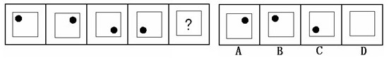 (答案:B。黑點(diǎn)在正方形中順時(shí)針移動(dòng)。在第5個(gè)圖形中,應(yīng)該正好移動(dòng)到左上角。)
