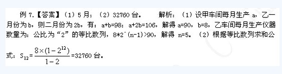 例7.甲、乙兩個車間生產同一種儀器,甲車間生產的儀器數量每個月保持不變,乙車間生產的儀器數量每個月增加一倍。已知一月份甲、乙兩個車間生產的儀器總數是98件,二月份甲、乙兩個車間生產的儀器總數是106件。(1)那么乙車間生產的儀器數量第一次超過甲車間生產的儀器數量是在幾月?(2)如果乙一直按照這個進度生產下去,則其在這一年內生產了多少臺儀器?