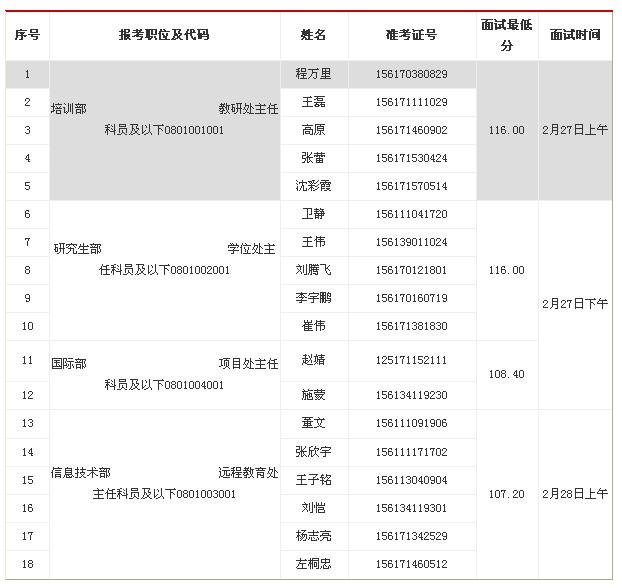注:國際部項(xiàng)目處主任科員及以下職位為調(diào)劑職位,其中面試最低分?jǐn)?shù)線為108.40,調(diào)劑考生筆試最低成績?yōu)?10.7。