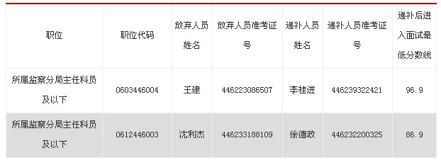因部分進(jìn)入面試名單人員自愿放棄面試資格,根據(jù)公務(wù)員考錄有關(guān)規(guī)定,擬進(jìn)行遞補(bǔ),現(xiàn)將考錄面試遞補(bǔ)人員名單公告如下: