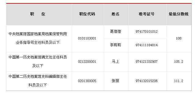 2013年國考面試遞補公告:中央檔案館國家檔案局