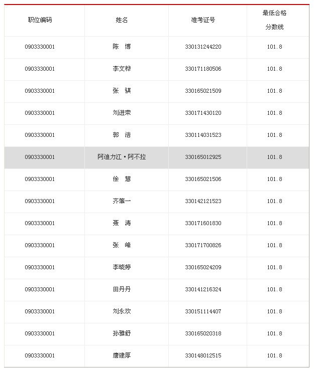 注:首次進入面試的考生劉世琢放棄面試資格,因此按照筆試成績由高到低的順序進行遞補唐建厚進入面試。