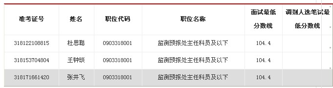 面試人員、筆試最低分數一覽表