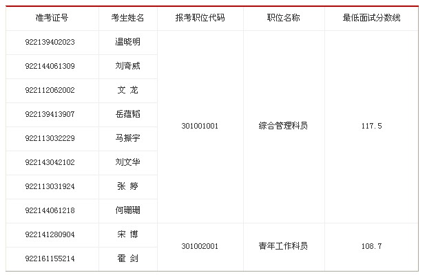 因部分考生放棄面試資格,按照公務員考試錄用工作有關規定,經中央組織部審核,從公共科目筆試合格考生中,按筆試分數排序依次遞補以下面試人員。請遞補考生按照《共青團中央關于2013年招錄機關工作人員郵寄材料的通知》有關要求提供材料并參加面試。